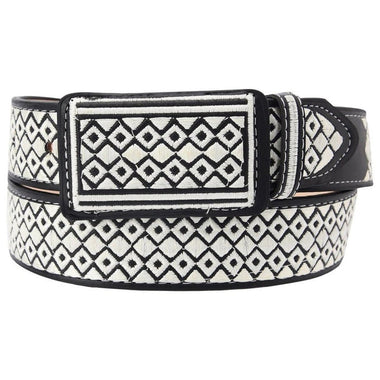 Confeccionado a mano por Maestros Artesanos Fina Pita Original de Ixtle Bordado con Grecas Estilo: Vaquero Color: Negro con Bordado Blanco Ancho: 1.5" (1.5 Pulgada) Marca: White Diamonds Boots Made in Mexico- $109.99
