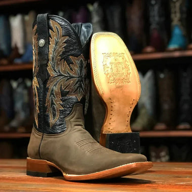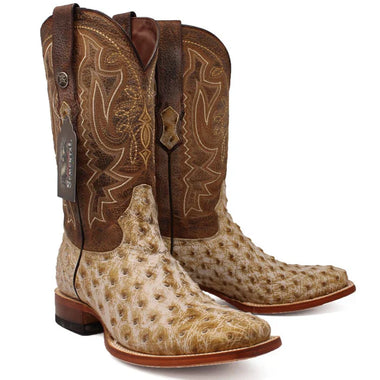 Men's Genuine Full Quill Ostrich Square Toe Boots Rio Grand Antique