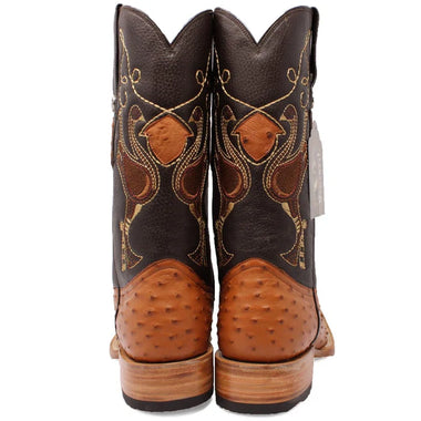 Men's Genuine Full Quill Ostrich Square Toe Boots Cognac