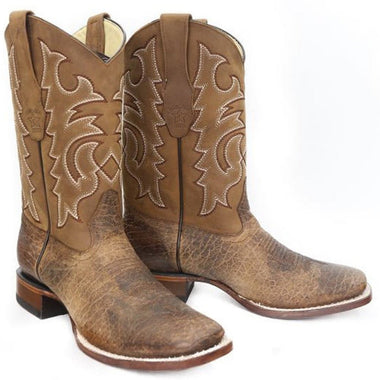 Botas de Cuero Cincelada Horma Rodeo Cuadrada Color Cafe