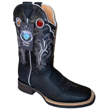 Botas de Cuero Cincelada Horma Rodeo Cuadrada Color Negro