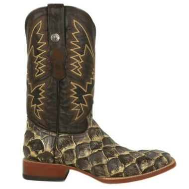 Men's Genuine Monster Fish Leather Square Toe Boots Matte Brown