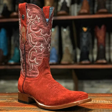 Men's Whiskey Jack Square Toe Leather Boots Ruff Out Red