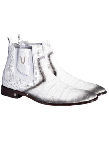 Men's Faded White Vestigium Boots Genuine Caiman Belly Chelsea Boots