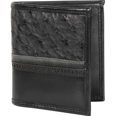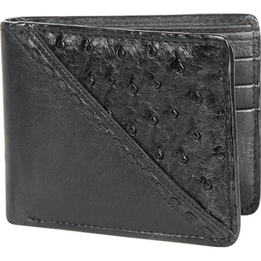 Piel con Avestruz Diseno Laser Color: Negro Fabricada en Mexico- $89.95