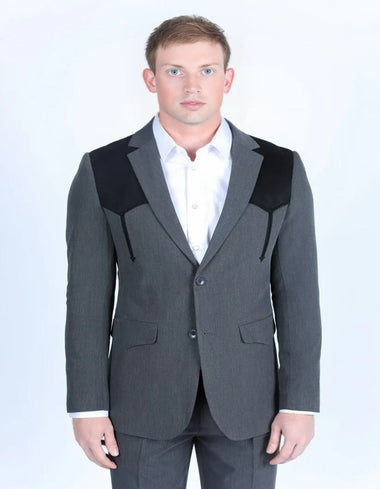 Men's Western Charcoal Suit Sport Coat with Suede Yokes and Elbow Patches