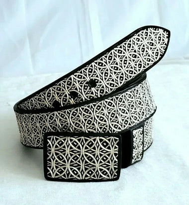 Confeccionados a mano por Maestros Artesanos Fina Piel de Cuero Original de Calidad Premium Hebilla Charra con Bordado de Figuras Geométricas Bordado con Fino Hilo de Plata Original Ley .925 Color: Negro Ancho: 2" (2.0 pulgadas) Marca: Botas White Diamonds Hecho en México- $1,219.99