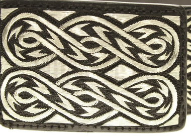 Confeccionado a mano por Maestros Artesanos Estilo: Mil Aros Fina Piel de Cuero Vacuno Original Bordado con Fino Hilo de Plata Original (Ley 95) Color: Negro Ancho: 2" (2.0 pulgadas) Marca: Botas White Diamonds Hecho en México- $1,319.99