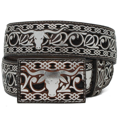 Cinto Vaquero de Cuero Original con Cabeza de Toro Plateado