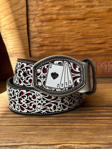 Cinto de Cuero Pokar de Ases con Hebilla de Metal