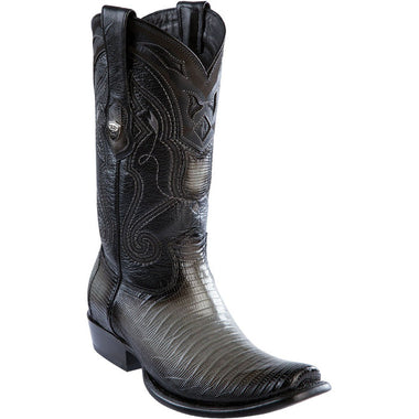 Confeccionadas a mano por Maestros Artesanos Fina Piel de Armadillo Lizard (Teju) Original de Primera Calidad Color: Gris Difuminado Horma: Dubái Suela de Vaqueta Tacon de 1.5" pulgadas de alto Ancho: EE Marca: Botas del Salvaje Oeste Fabricadas en León, Guanajuato, México- $359.99