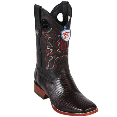 Confeccionadas a mano por Maestros Artesanos Fina Piel de Armadillo Lizard (Teju) Original de Primera Calidad Color: Negro Rojizo Horma: Cuadrada Ancha Suela de Vaqueta Tacon de 1.5" pulgadas de alto Ancho: EE Marca: Botas del Salvaje Oeste Fabricadas en León, Guanajuato, México- $319.99