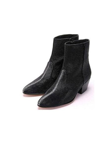 Botas Los Altos para hombre, piel auténtica de mantarraya, cremallera interior, botas negras de mantarraya, botas de estilo tobillero para hombre