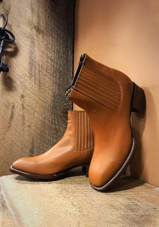 Parte superior de cuero cosida a mano de 13" Tacón occidental de 1,5" Suela de cuero Forro de cuero Correas de tracción Color: Negro- $344.00
