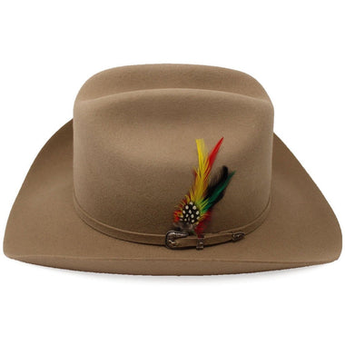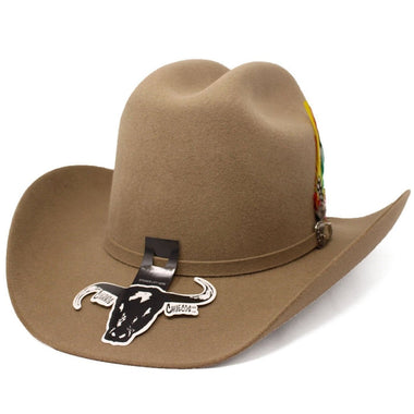 Texana Cuernos Chuecos 6X Estilo Dos Carnales con Plumas Color Sahara