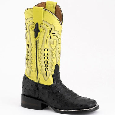 Botas de Avestruz Original Horma Cuadrada para Dama Color Ambar