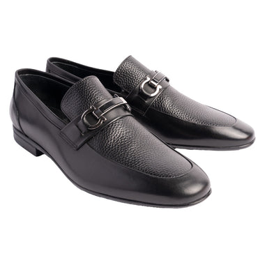 Expertly crafted with soft and sleek material, the P00080 Barferr Buckle Loafer in classic black offers both comfort and style. The rubber sole provides superior cushioning for all-day wear. Elevate your wardrobe with this sophisticated loafer for a polished and comfortable look.- $269.00