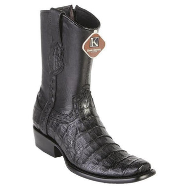 Men's King Exotic Caiman Square Toe Boots Rubber Sole & Saddle Vamp Black (48168205)