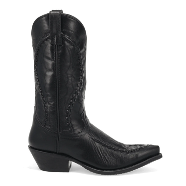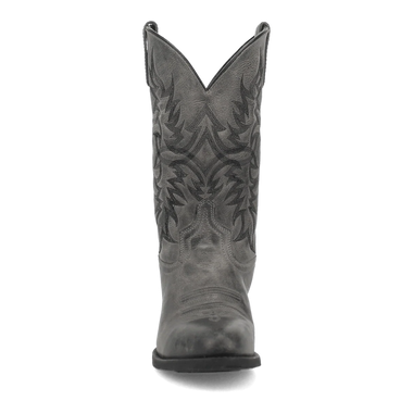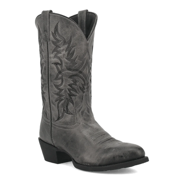 Deep navy leather craftsmanship. Cushion comfort for all-day support. Stylish and classic snip toe. Laredo Flex rubber outsole for grip. Medium cowboy heel, 1 1/4". 12" shaft height for a traditional look. Durable and long-lasting design. Timeless Western appeal- $154.00