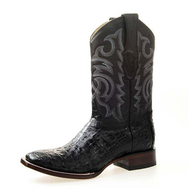 Botas de punta cuadrada de cuero con estampado de cola de caimán para hombre - Negro