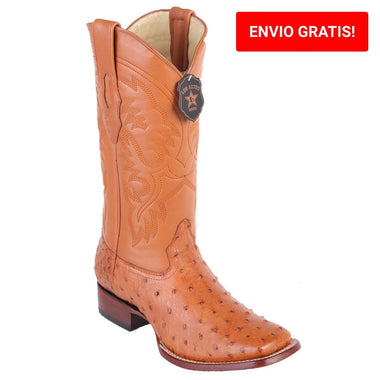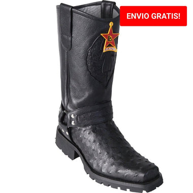 Botas de Avestruz Original Punta Cuadrada Ancha Color Negro
