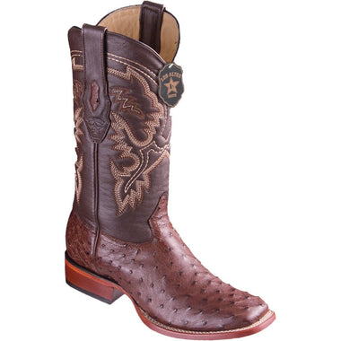 Botas de punta cuadrada de avestruz con estampado Big Cabin de Tanner Mark para hombre, color chocolate