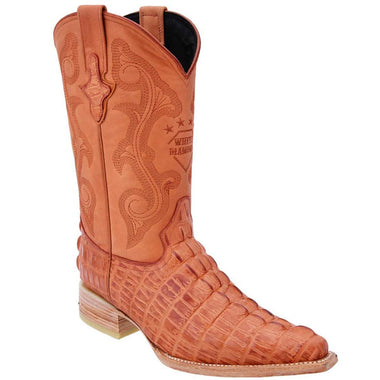 Confeccionadas a mano por Maestros Artesanos Piel de Cuero Original con Acabado Tipo Cocodrilo Color: Coñac Horma: Rodeo americano Suela de Vaqueta Tacon de 1.5" pulgadas de altura Ancho: EE Marca: White Diamonds Boots Fabricadas en León, Guanajuato, México- $189.99