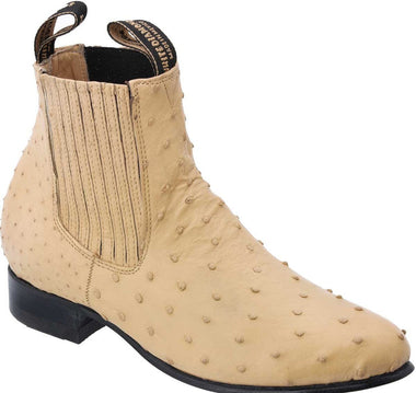 Confeccionadas a mano por Maestros Artesanos Fina Piel de Avestruz Completa Original de Primera Calidad Cremallera al Costado Color: Arena Difuminada Horma: Cuadrada (Hudson) Suela de Vaqueta Ancho: EE Marca: Botas White Diamonds Fabricadas en León, Guanajuato, México- $469.99