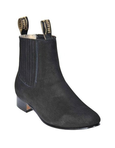Los Altos Boots Black Leather Chelsea Charro Botin Short Ankle Deer Boot ~ botines para hombre For Men - Short Cowboy - Western Ankle Boots