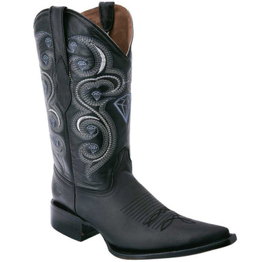 Confeccionadas a Mano por Maestros Artesanos Fina Piel de Cuero Vacuno Original de Primera Calidad Toro Bordado Color: Negro Horma: Rodeo Suela de hule Tacon de 1.5" pulgadas de alto Marca: White Diamonds Boots Fabricadas en León, Guanajuato, México- $179.95