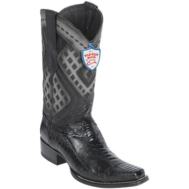 Confeccionadas a mano por Maestros Artesanos Fina Piel de Pata Avestruz de Primera Calidad Color: Negro Horma: Europea Suela de Vaqueta Tacon de 1.5" pulgadas de alto Ancho: EE Marca: Botas del Salvaje Oeste Fabricadas en León, Guanajuato, México- $359.99