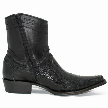 Botines de Pata de Avestruz Original Horma Europea Cuadrada Negro LAB