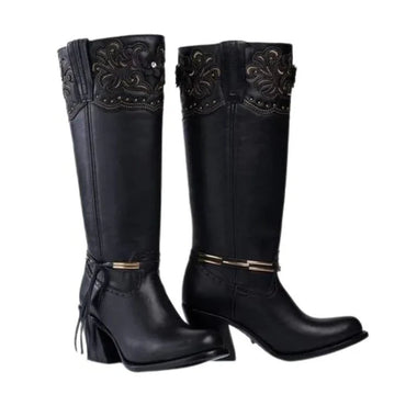 Botas de Cuero Cincelada Horma Rodeo Cuadrada Color Negro