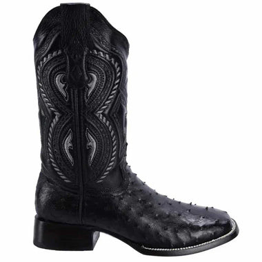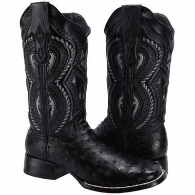 Botas de Avestruz Original Horma Rodeo Cuadrada Color Negro JBBLACK
