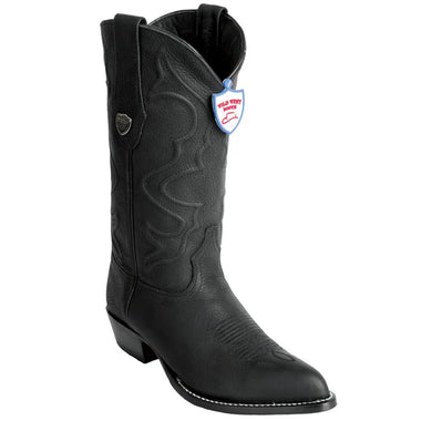 Confeccionados a mano por Maestros Artesanos Fina Piel de Venado Original Color: Negro Horma: Charro Redonda (Puntera Redonda) Suela de cuero Ancho: EE Tacon de 1.5" pulgadas de alto Marca: Botas del Salvaje Oeste Hecho en México- $179.00