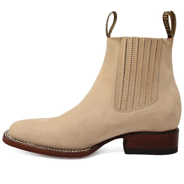 Botines Charros de Gamuza Punta Cuadrada Perla RD-BNPER