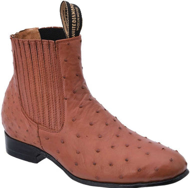Confeccionados a mano por Maestros Artesanos Fina Piel deAvestruz de Primera CalidadCertificada Color: Coñac Horma:Puntal Suela de Vaqueta Taco de 2 pulgadas de alto Ancho:EE Marca:Botas White Diamonds Hecho en México- $519.99