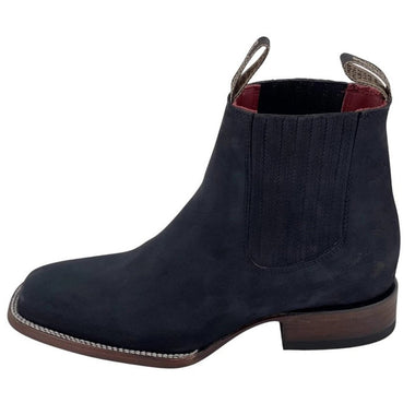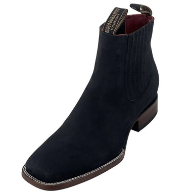 Botines Charros de Gamuza Punta Cuadrada Color Negro Liso DUR