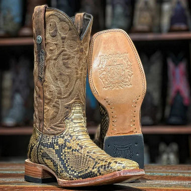 Botas de punta cuadrada de piel de pitón auténtica para hombre de Tanner Mark, color natural