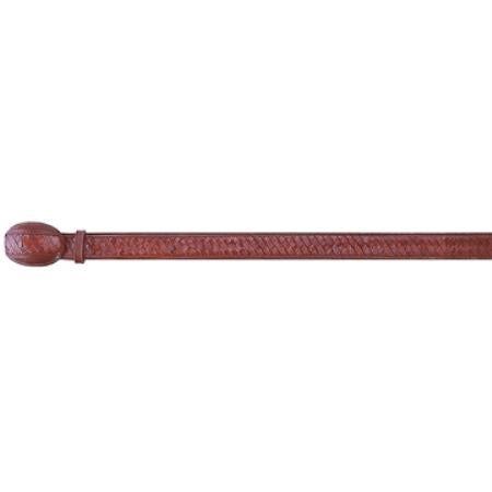 •  Cinturón de 1,5" de piel de lagarto auténtica color coñac y hebilla reemplazable.
