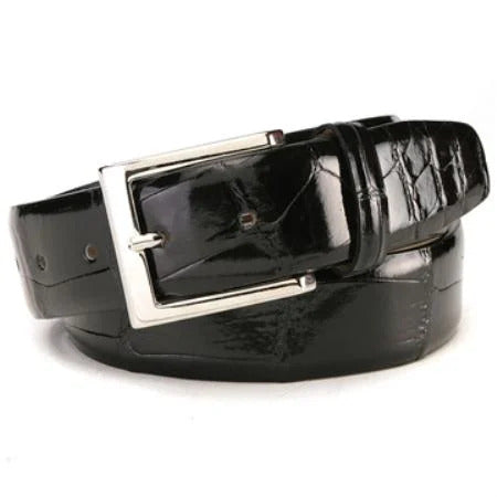 • Punta cuadrada, hebilla artesanal de plata y pasador de piel de caimán.