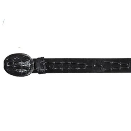 •  Añade un poco de estilo a tu atuendo con este cinturón de piel de cocodrilo negro acentuado con un diseño estampado.