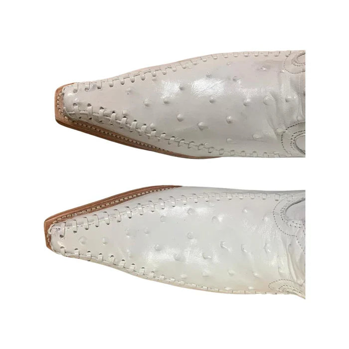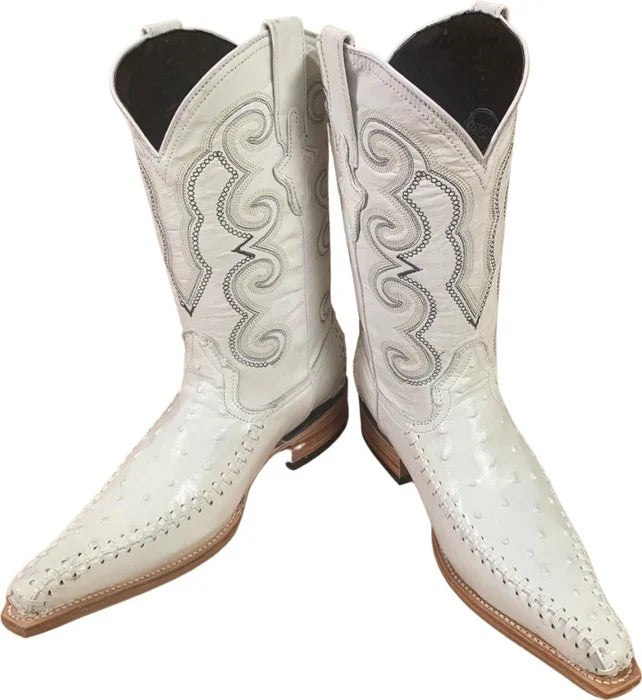 Botas de Avestruz Grabado Tejida Horma 3X Aladino Blanco WD