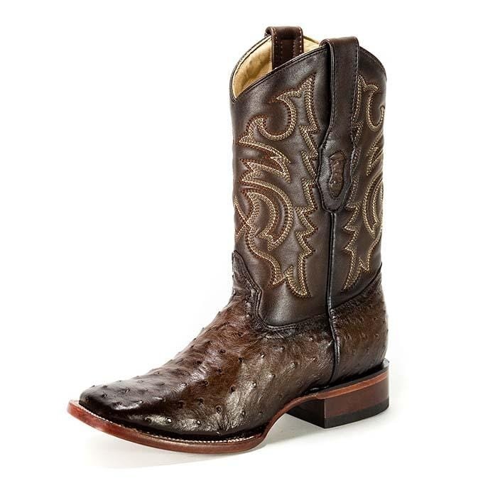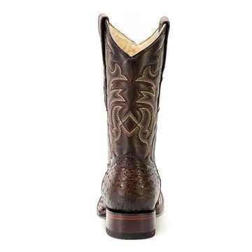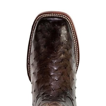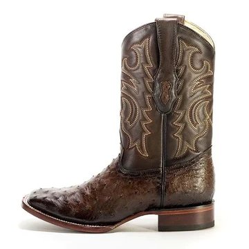 Botas de Avestruz Punta Rodeo Cuadrada Color Café