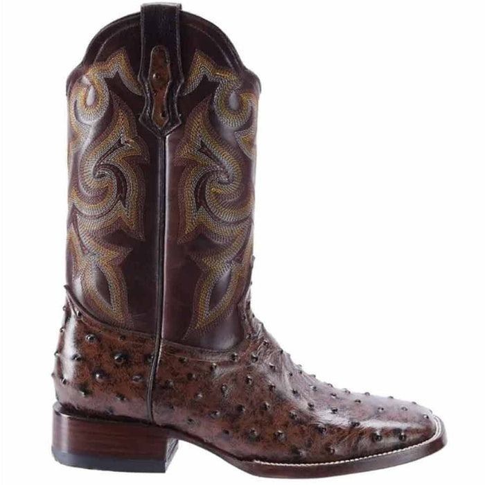 Botas de Avestruz Grabada Horma Rodeo Cuadrada Color Café