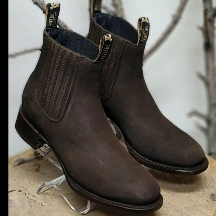 Botines Charros de Gamuza Potro Rebelde con Punta Cuadrada PR