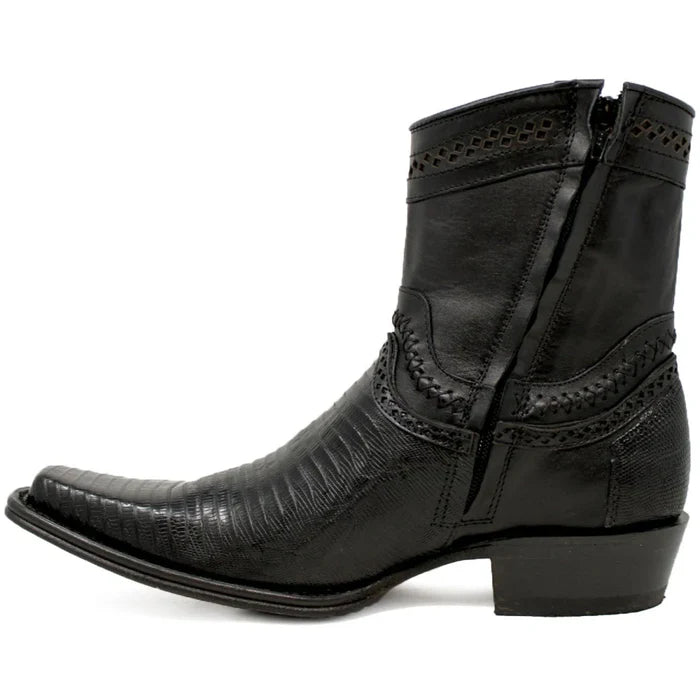 Hechos a mano Fina Piel de Armadillo Lagarto Original Cremallera en los lados Color: Negro Horma: Cuadrada...