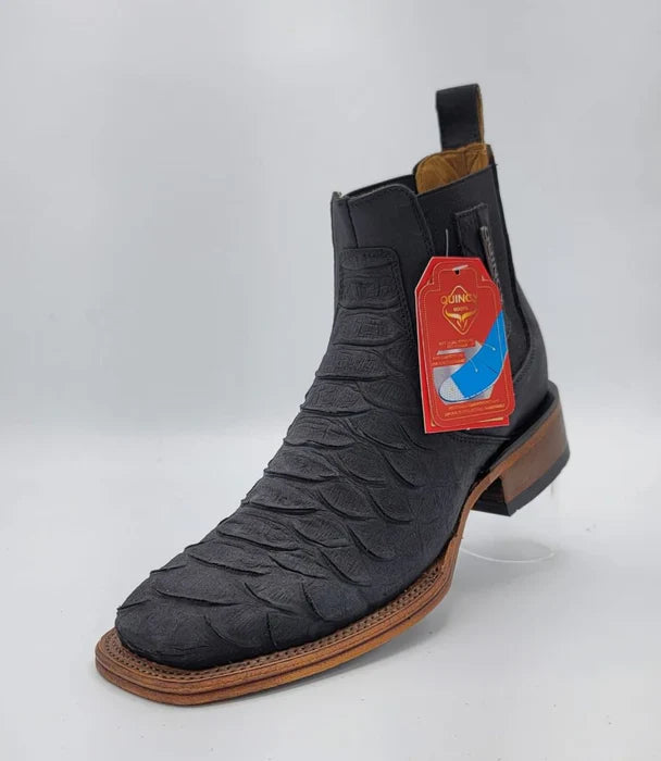 Botines de Pitón Grabado Punta Cuadrada Color Negro