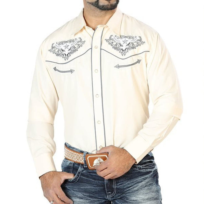 Color: Beige con Bordado de Toros Plata