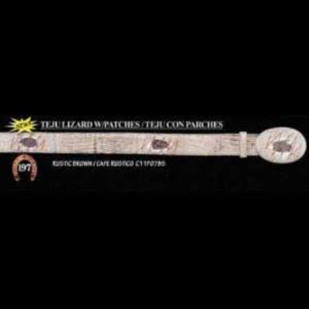 Cinturón exótico de vaquero de 1,5 pulgadas con parche de lagarto teju de Los Altos
